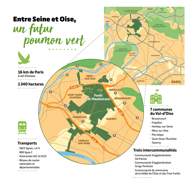 La Forêt de Maubuisson constituera un poumon vert entre les rives de Seine et d’Oise, l’agglomération de Cergy-Pontoise et la vallée de Montmorency.